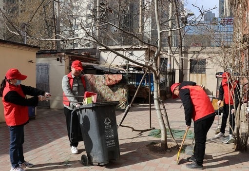 “下面的活儿咱们兵分两路,尚丽霞带领一组打扫居民楼周围的杂草和楼道卫生,第二组清理楼房以及单元门上小广告……”分配完任务后大家马上开始分头行动