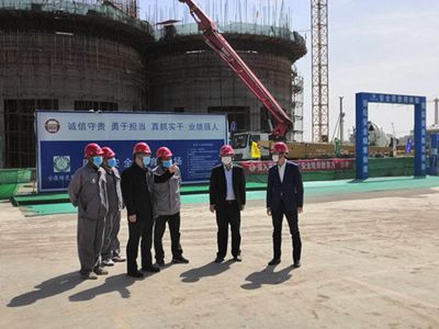 董富强首先去施工现场查看了筒仓区及化产区两个标段的施工情况,了解项目的施工质量、形象进度、安全文明施工,在备煤筒仓标段主要看了18个筒仓的滑模外观质量情况,详细了解了滑模施工的人材机准备情况,要求项目部保质保量完成滑模施工和其它施工任务,诚信履约,向业主交一份满意的答卷。