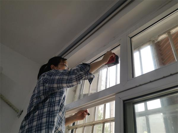 本次活动主要针对河北四建的公共卫生区域。先是擦玻璃,职工孟荣荣说:“用报纸擦吧,以前都用报纸擦,擦得很干净。”“那都是老黄历了,现在都用擦玻璃神器啦,我早准备好了。”赵蓓说。只见赵蓓拿出自带了“刮水”功能的擦玻璃神器,沾上洗洁精水,吸附到玻璃窗上,不一会儿就把玻璃擦得干干净净。一楼设计室的外窗高,综合办准备了加长杆的玻璃刮子,司南带领几名青年职工认真擦拭,使窗户变得洁净透亮。接下来打扫办公区域,职工们不放过一个盲区、不落下一个角落。大家对办公室、楼道、卫生间的卫生死角进行清扫、喷洒消毒;对打印机、饮水机、储物柜等公用设备进行擦拭消毒;对门把手、冲水按钮、水龙头开关等擦拭消毒。室内清理完后清理小花园,大家拿着扫把、铲子等工具,清扫拔除杂草,捡拾花池的杂物,清理卫生死角,经过两个小时的劳动,办公环境内外焕然一新。