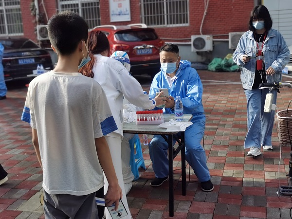 “没问题,马上到”,孙志华一边接电话,一边穿衣服往外走。一路小跑很快来到小区核酸检测点,只见大家已经有秩序地排成两队,拉开安全距离,耐心地等待着。